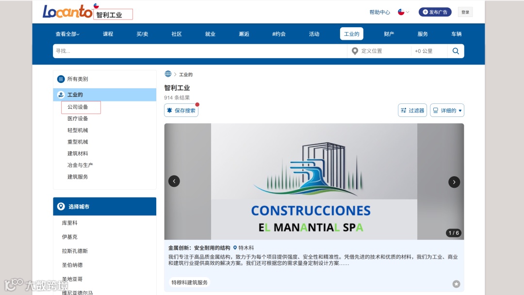 智利企业名录平台,覆盖化学、制药、能源、技术、纺织服装、物流、汽车、食品饮料、建筑、矿产和工业机械等多个行业。