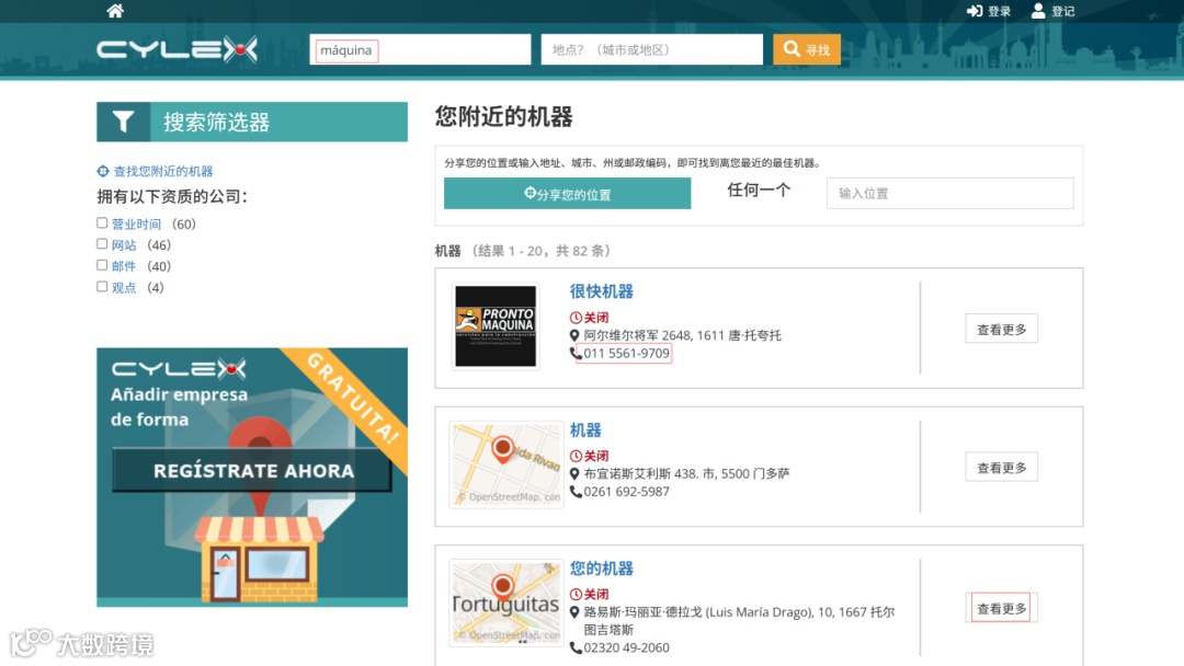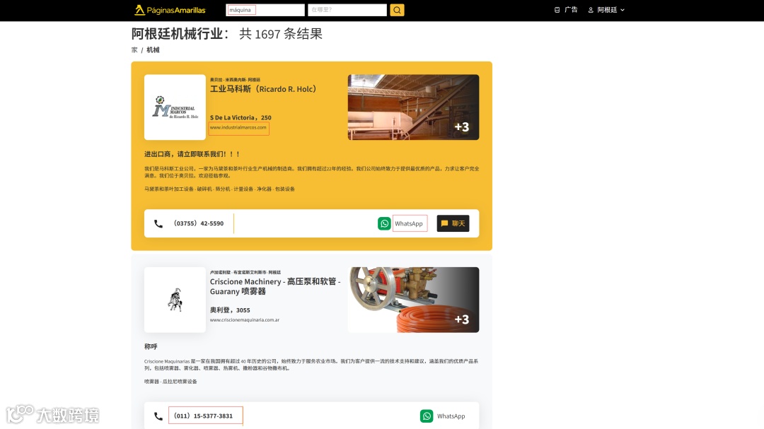 该平台在阿根廷被广泛用作企业查询工具,虽知名度不及Paginas Amarillas,但可作为补充搜索渠道。