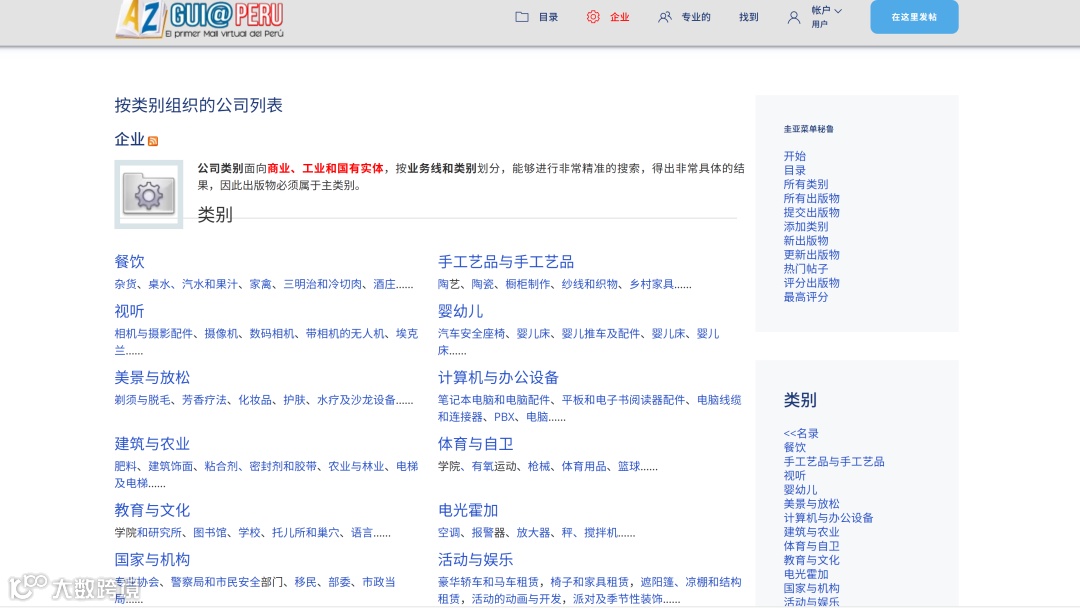 秘鲁在线商业目录,支持按行业类别或城市关键词进行搜索。