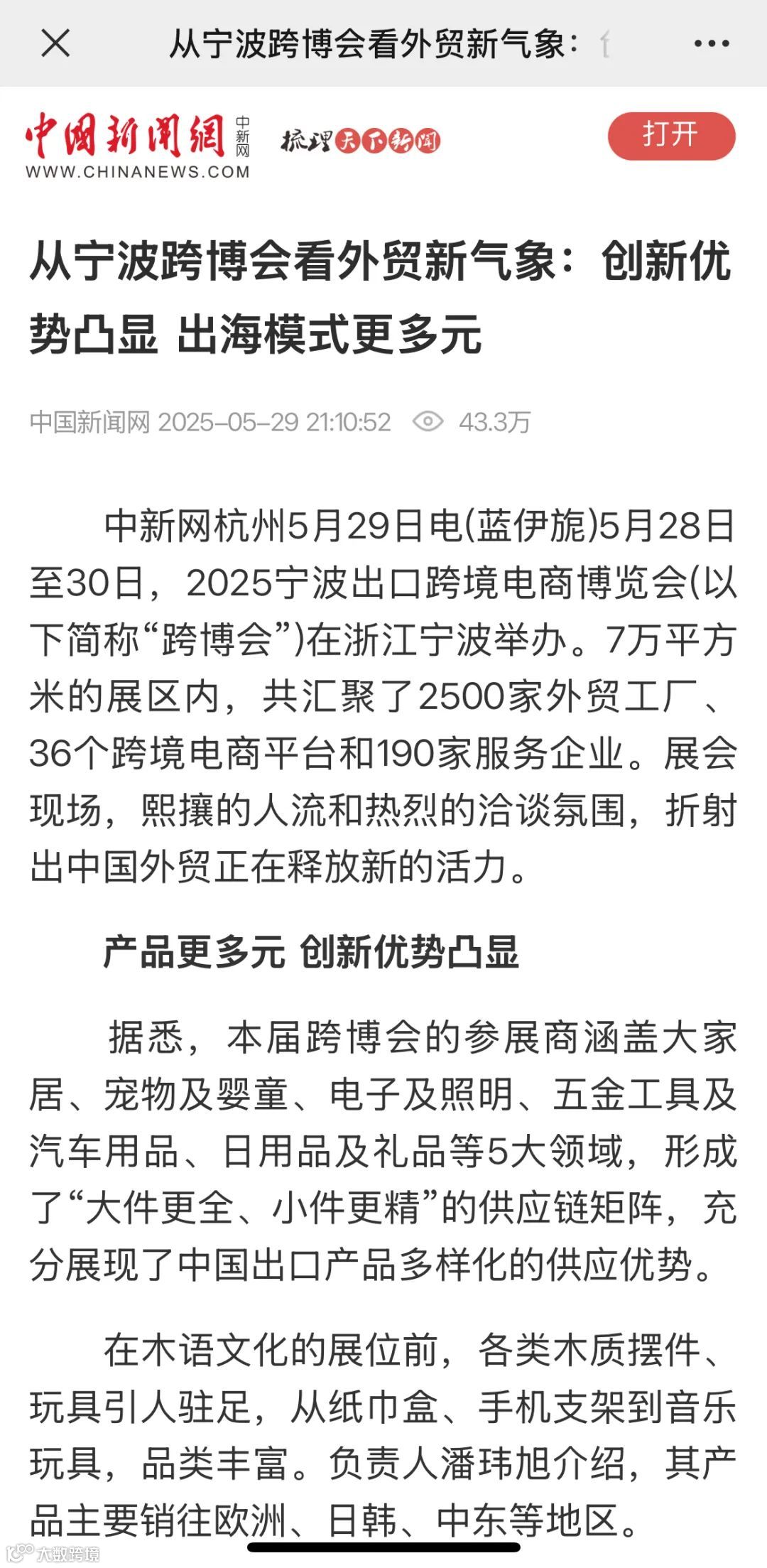 继2024年邢台商务局团组首次参与宁波跨博会后,宁波市商务局与宁波市跨境电子商务协会多次组织企业赴邢台考察童车、自行车等产业带资源。在双方企业共同推动下,邢台集采服务中心正式成立。2025年跨博会期间,该中心与宁波跨境电商企业完成首批采购订单签约,金额达200万美元。据透露,今年预计将为宁波企业提供近500万美元的采购服务,进一步深化“跨境电商+产业带”融合发展模式[k]。