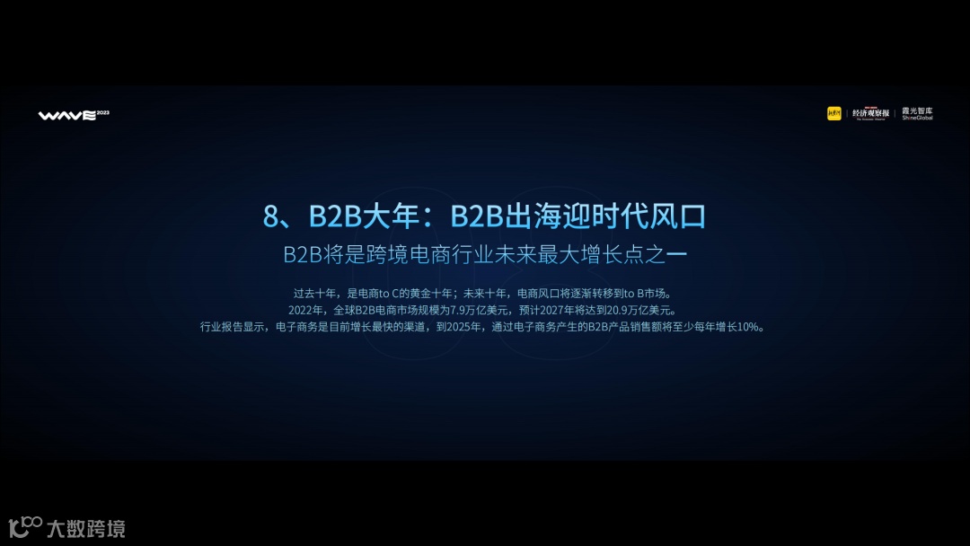霞光智库的第八条洞察是,2024年,B2B将是跨境电商行业未来最大增长点之一。