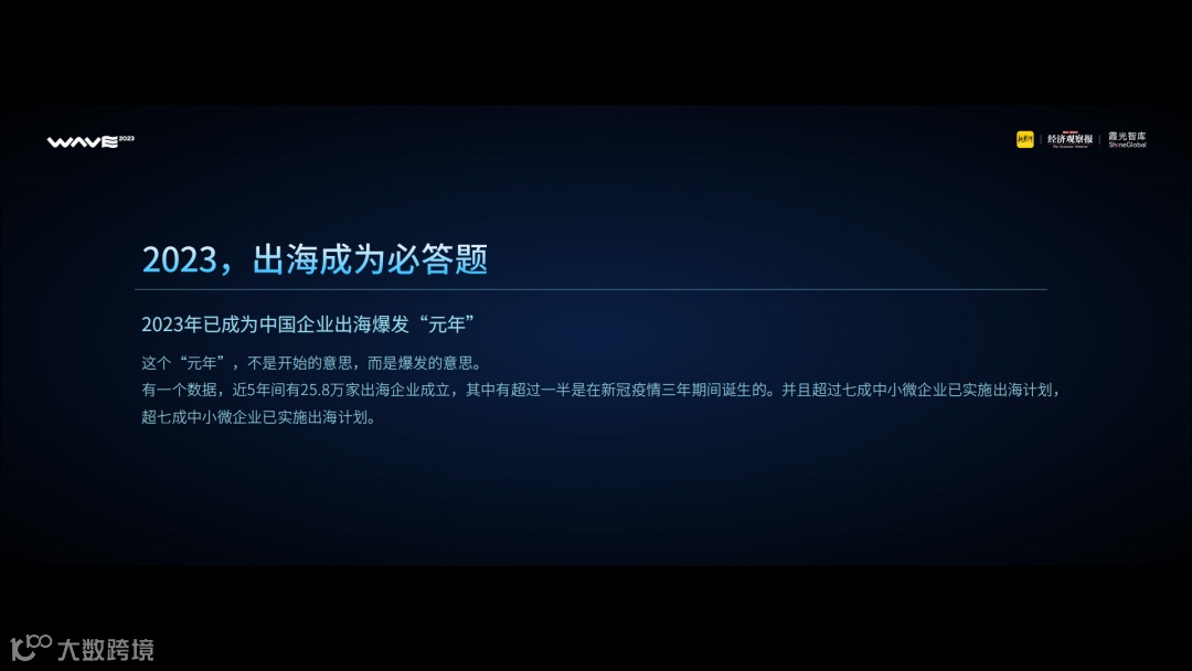 有一个数据,近5年间有25.8万家出海企业成立,其中有超过一半是在疫情3年期间诞生的,而超七成中小微企业已实施出海计划。