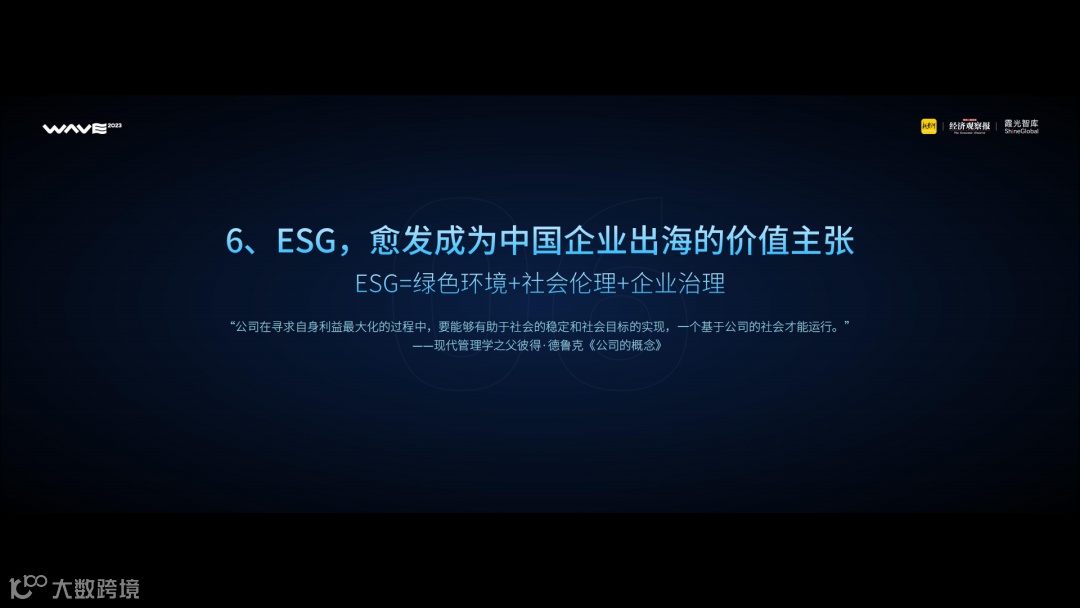 除了企业在海外市场的本地化合规外,ESG,也愈发成为中国企业出海的价值主张。