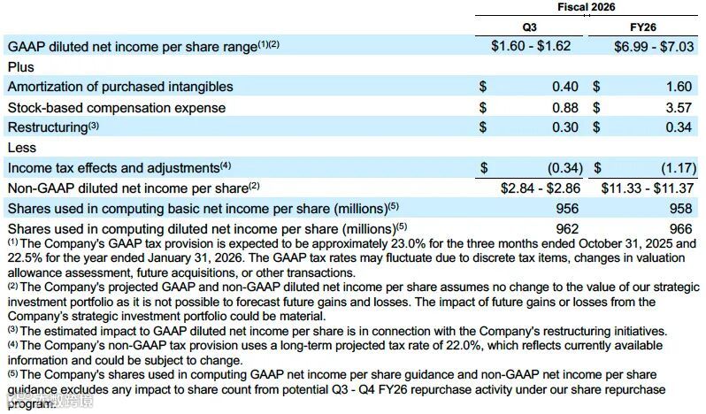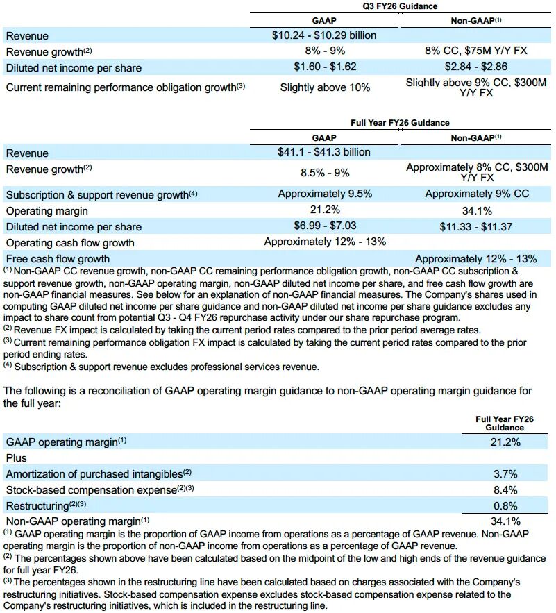 更新2026财年全年GAAP营业利润率指引为21.2%,非GAAP营业利润率指引上调至34.1%。