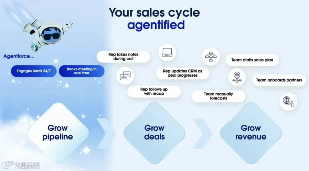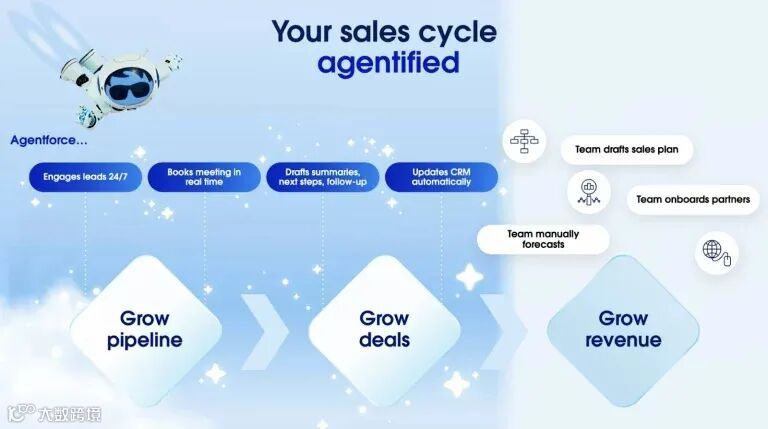 Sales Cloud持续演进的下一步,便是Agentforce Sales。在人类与智能代理协同工作的时代,Salesforce 不仅将 Sales Cloud 更名为Agentforce Sales,更明确指出了对端到端销售流程进行 “代理化” 改造的清晰方向。