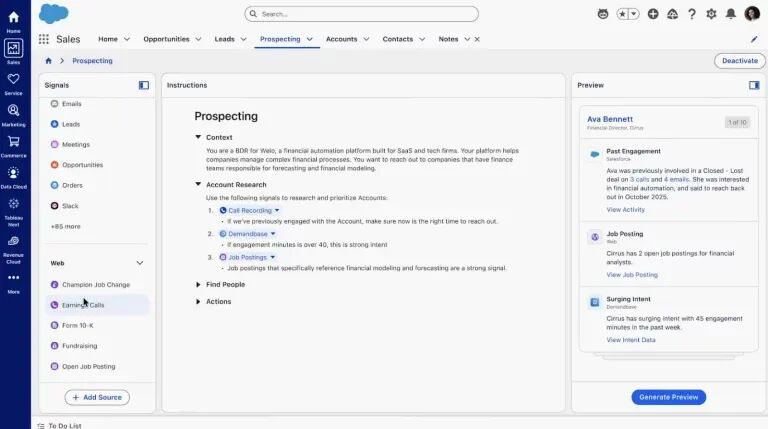 在收购 Bluebirds ,并与 ZoomInfo 和 6sense 等第三方数据提供商建立合作后,Agentforce Sales 将推出全新的潜在客户挖掘与信息完善功能,该功能目前计划于 2026 年 2 月全面上线。
