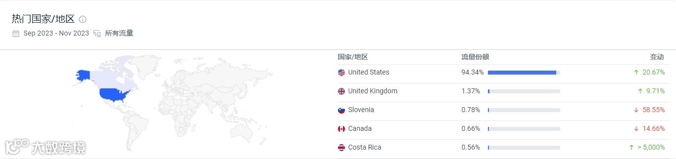 而北美则是智能家居安全监控的主要市场,数据显示,2022年北美市场规模达到29.9亿美元,预计到2030年,这一数字将增长至127.4亿美元。根据similarweb数据显示,SimpliSafe官网94.34%的流量来自于美国,可见其就是以美国为主要目标市场的,而这也是跨境卖家可以优先考虑的市场之一。