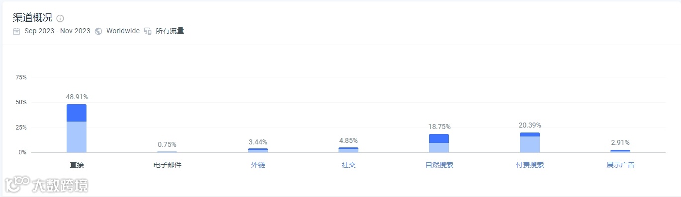 根据similarweb数据显示,SimpliSafe官网的流量主要来自于直接访问流量(48.91%)、付费搜索流量(20.39%)、自然搜索(18.75%)。