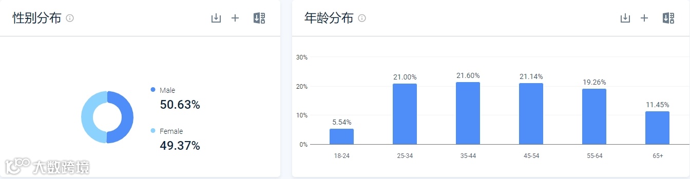 根据similarweb数据显示,SimpliSafe官网女性用户占比为49.37%,男性用户占比为50.63%,年龄分布较为均匀,除了18岁到24岁以及65+以上,这两个年龄段占比偏低以外,其他年龄段占比都在20%左右,可见SimpliSafe的受众是非常广泛的。