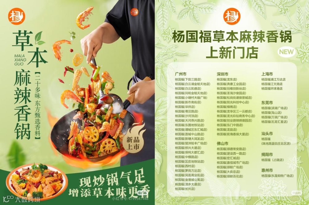 最新动态显示,近日杨国福在旗下门店上线了草本麻辣香锅系列产品。与传统麻辣香锅不同,杨国福此次主打“草本健康”概念,甄选20味优质天然草本香辛料,强调“辣而不燥”,并强调全程“现炒现制”。据杨国福官方小红书账号透露,该新品7月1日起就已陆续在全国各线城市全面上线。
