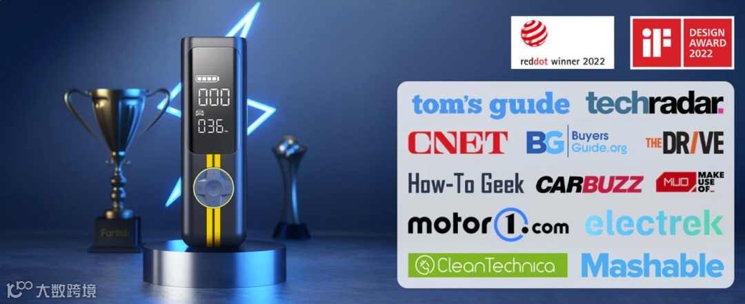 Fanttik以充气机、螺丝刀和汽车吸尘器三大品类为核心,价格从20美元到接近300美元不等,客单价平均在百元左右。其简约精致的美学设计不仅赢得了市场的认可,更屡获红点奖、IF设计奖等行业殊荣。