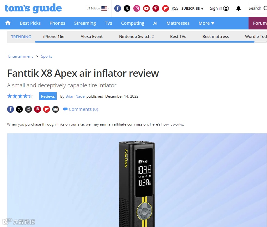 而在产品推广方面,品牌侧重与博客网站合作发布实测稿件。如2022年Tom’s Guide 发布热销产品X8 Apex的实测稿件,从实际使用视角输出了真实意见,有效为意向消费者提供决策参考。