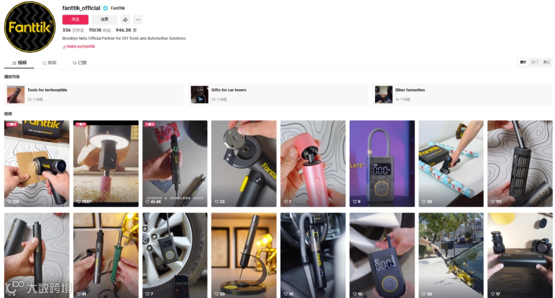 与传统汽修品牌不同,Fanttik自诞生之日起就深谙多媒体营销之道。随着TikTok在北美市场的崛起,Fanttik迅速洞察到这一平台对品牌传播的影响力,于2021年8月开始建设官方账号,并发布第一条汽车相关内容。不断进行运营方向调整后,目前官方账号围绕热销产品自制内容,主要为简短的产品展示和使用实拍等,吸引了大量粉丝关注。