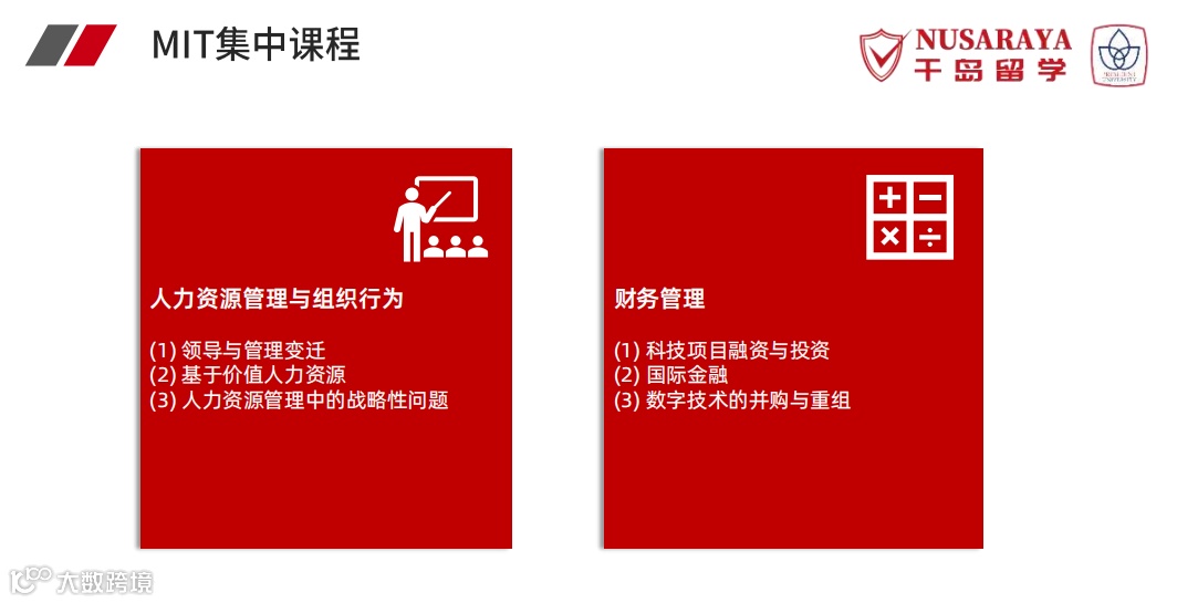 MIT信息工程硕士课程面向现代商业与科技创业领域,培养学生掌握实用的技术管理与创新能力。课程内容每年根据国内外企业需求更新,融合实践知识与真实行业案例,提升学生解决复杂技术与商业问题的能力[k]。 课程致力于培养学生全面的管理领导技能、创业思维及技术驱动业务增长的能力。学制为12个月,适合具备学士学位及0-2年工作经验的年轻高管或高技能专业人士[k]。 授课方式为周一至周五线上线下结合[k]。