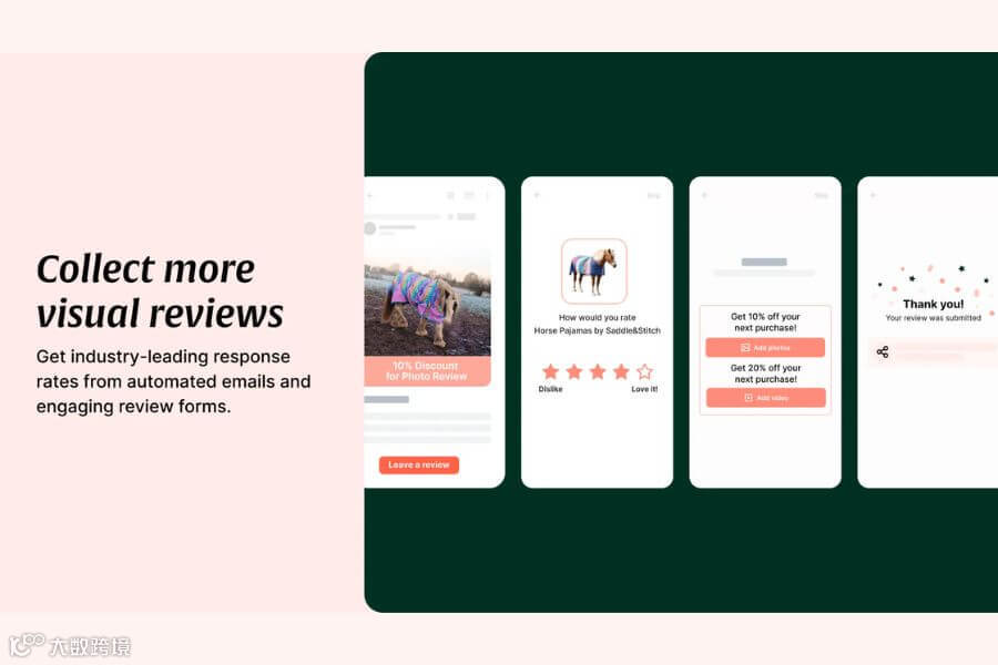 Judge.me产品评论使Shopify商家能够轻松建立信任,并将访问者转化为客户。在一个地方收集和显示无限的产品评论、照片、视频、推荐、星级和谷歌评论。使用时尚的评论小部件和推荐滑块在您的商店、Meta、TikTok或其他平台上展示它们。你甚至可以通过推荐计划、折扣码和从亚马逊、Etsy、Yotpo或Loox导入的评论来推动更多的评论和重复销售。有了Judge.me,管理和展示评论很简单,帮助购物者充满信心地购买并提高销售额,所有这些都得到了24/7五星级支持的支持。