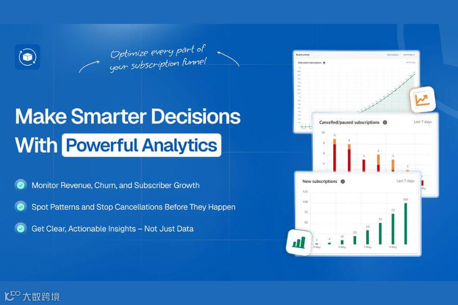 盖章订阅使Shopify商家通过产品订阅和订阅箱轻松获得稳定、可预测的收入。您可以在几分钟内完成设置,创建您的第一个订阅规则,并开始销售经典或预付订阅,包括折扣、忠诚度福利、免费礼品和定制配送。客户可以通过魔术链接轻松管理他们的订阅,而您可以控制订阅、流失和取消。实时分析可帮助您优化性能,使用自定义电子邮件域的白标品牌使一切保持专业。在您的大力支持下,印章订阅是一种增加收入和建立忠诚客户的简单方法。