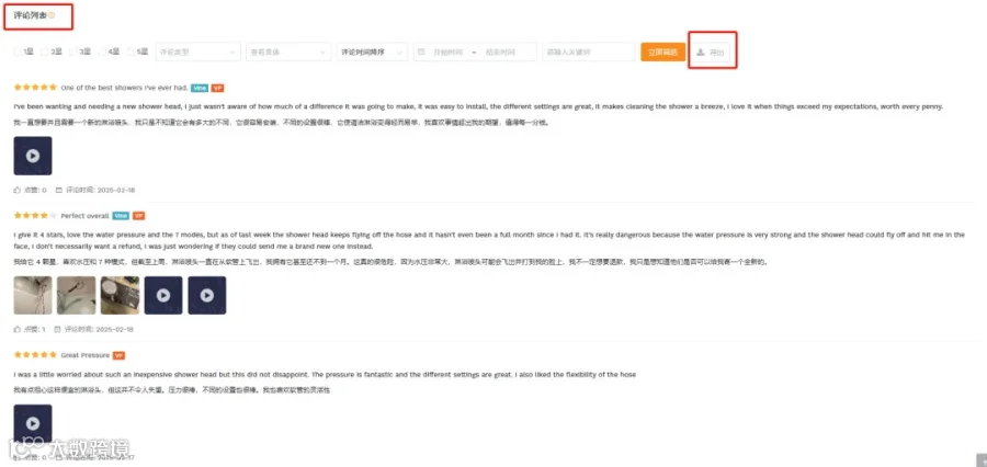 抓取Top 10商品的1-3星差评,提炼核心痛点(如“软管易裂”、“水压不稳定”)。
