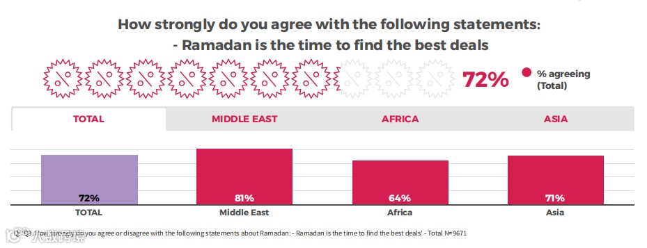 当今的消费者在斋月期间购买各种产品,从食品和杂货到服装,从家居和园艺到美容和电子产品。有趣的是,81%的中东消费者认为斋月是寻找最佳交易的理想时机,这一比例高于全球的72%。