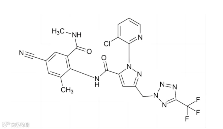 四唑虫酰胺是由拜耳公司开发的新型邻甲酰胺基苯甲酰胺类杀虫剂,拜耳成功将四唑基引入此杀虫剂中,实现了全球首创。这使得四唑虫酰胺成为双酰胺类杀虫剂中同时含四唑结构的新型杀虫剂。