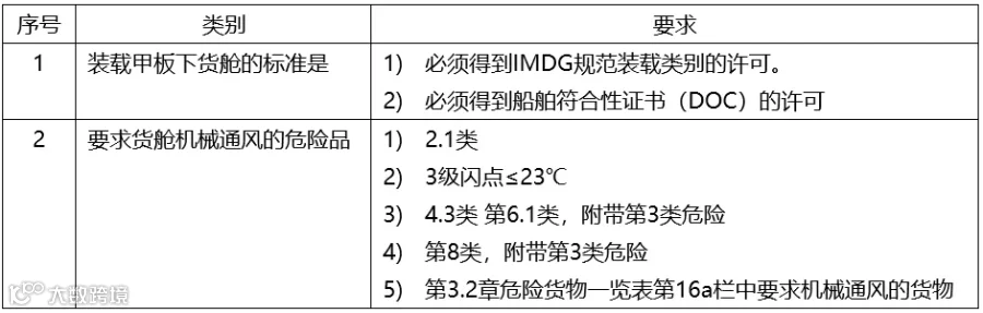 装载非MHB类B类货物还需满足SOLAS II-2/19条及第七章相关要求[k]。部分货物在适装证书中附有运输条件和注意事项,须满足后方可承运[k]。具体以船级社签发文件为准[k]。