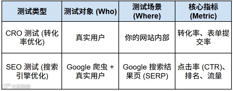 二、核心思维转折:SEO A/B 测试 vs. CRO A/B 测试