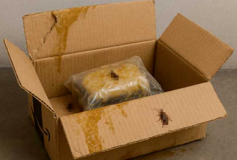 部分邮件内容尤为荒谬,例如销售五金配件的卖家被指控“液体泄漏导致皮肤灼伤”,而售卖充电器的卖家收到的投诉图片竟是一个爬满蟑螂的面包。