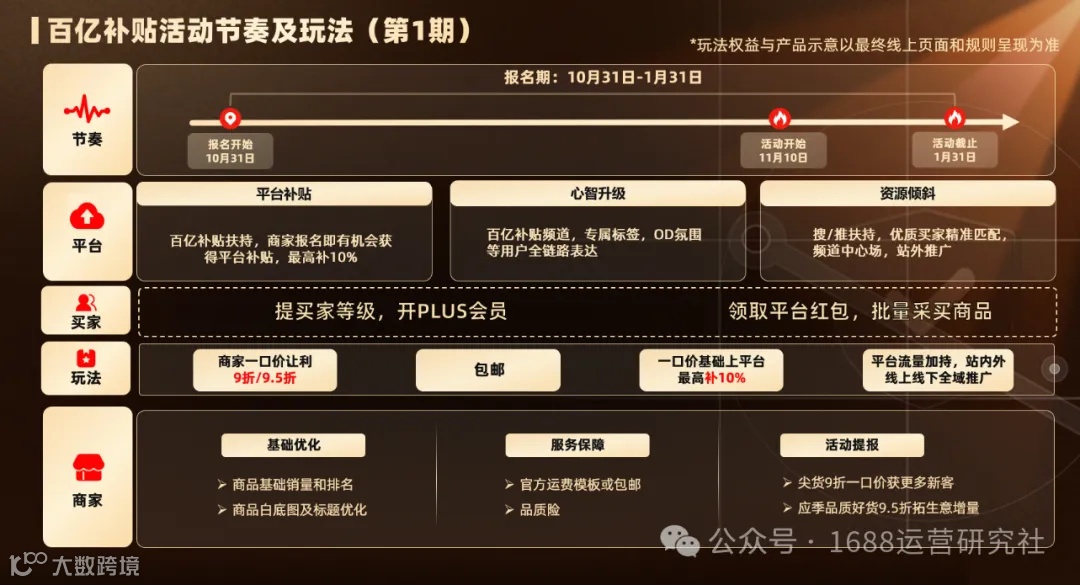 1688“百亿补贴”项目已转为长期化运营,持续开放报名。参与商品将获得专属标签、搜索加权及大促资源倾斜,有效提升曝光与转化率。建议具备价格优势和稳定供应链的商家积极申报,抢占平台级流量入口。