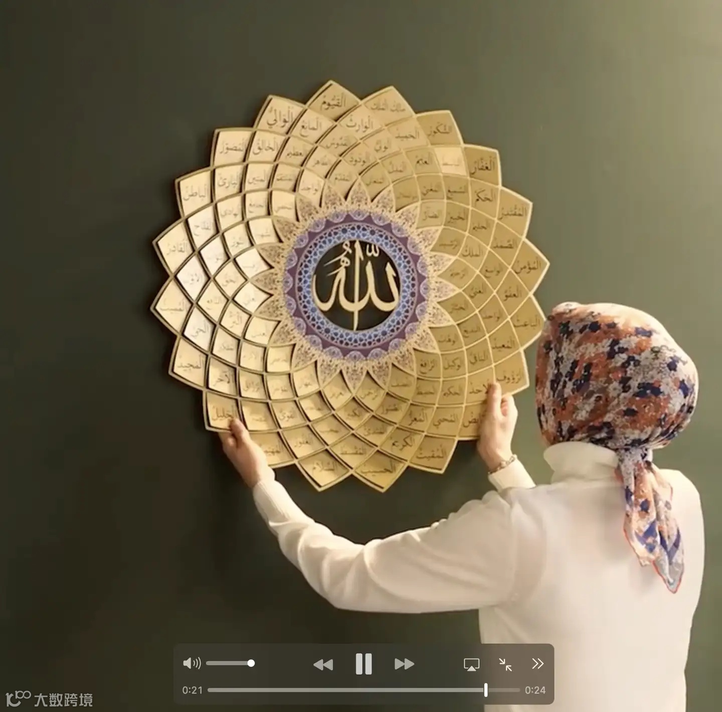 每块图形上面都印有真主的尊名,是穆斯林每天在礼拜中要念诵的99 个名字,用作墙面装饰多了一层祈福的美好寓意。
