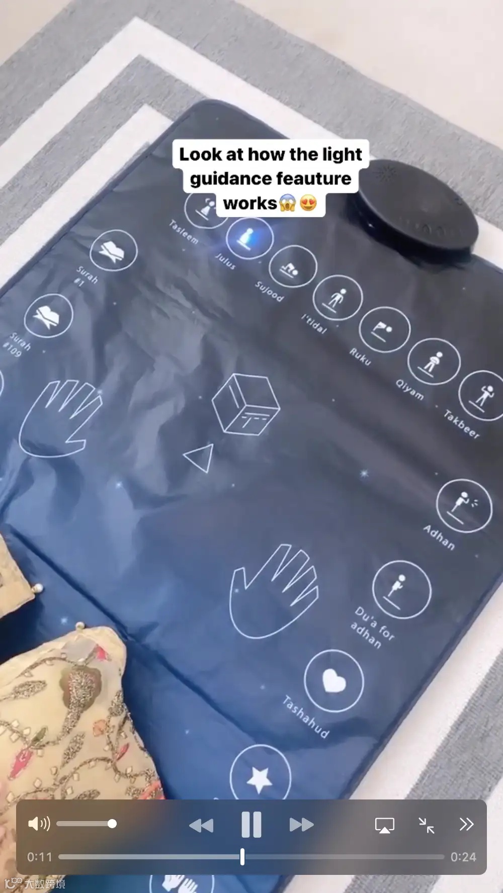 对穆斯林学习礼拜的流程有所了解的朋友可能知道,传统的口口相传的教授方式步骤复杂易错(涉及动作、祷文、方向等),尤其对儿童、新皈依者来说,门槛极高。智能祈祷垫的出现就解决了这一痛点。全程有语音、图标提示,不必担心出错。