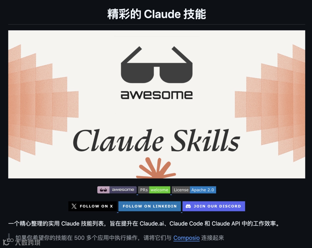 开源地址:https://github.com/ComposioHQ/awesome-claude-skills