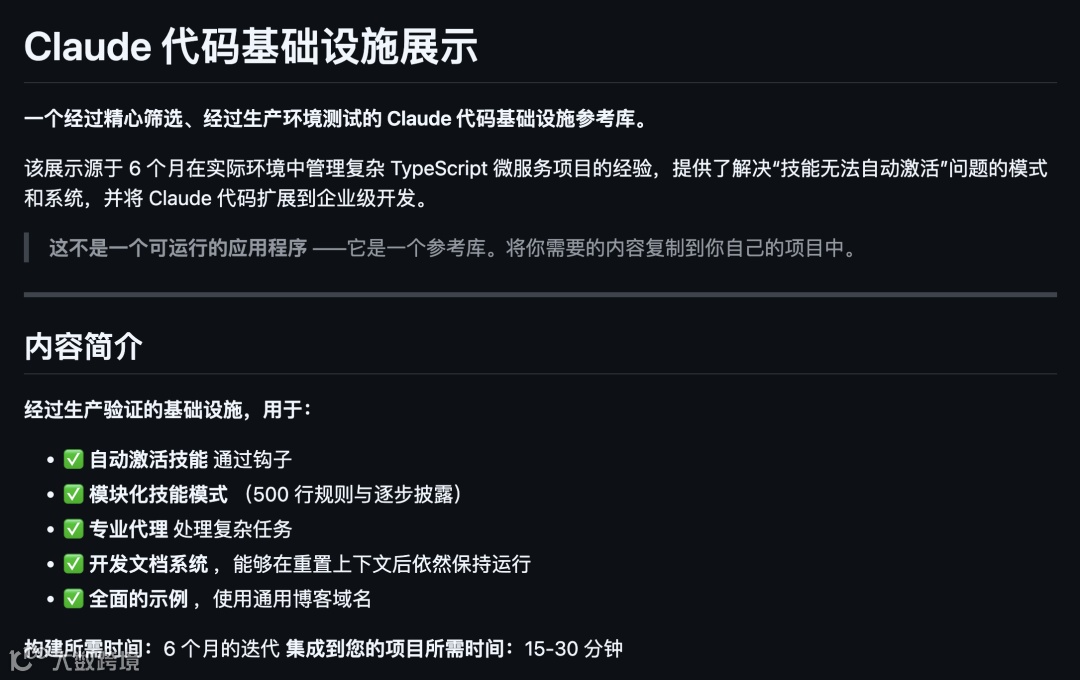 开源地址:https://github.com/diet103/claude-code-infrastructure-showcase