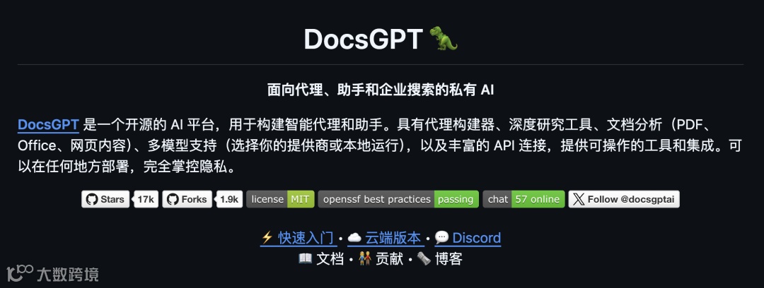 这个叫 DocsGPT 的开源项目,现在也有 1.7 万的 Star 了。