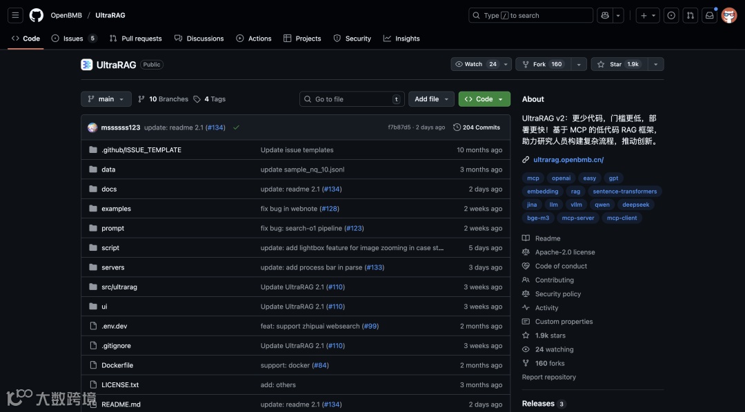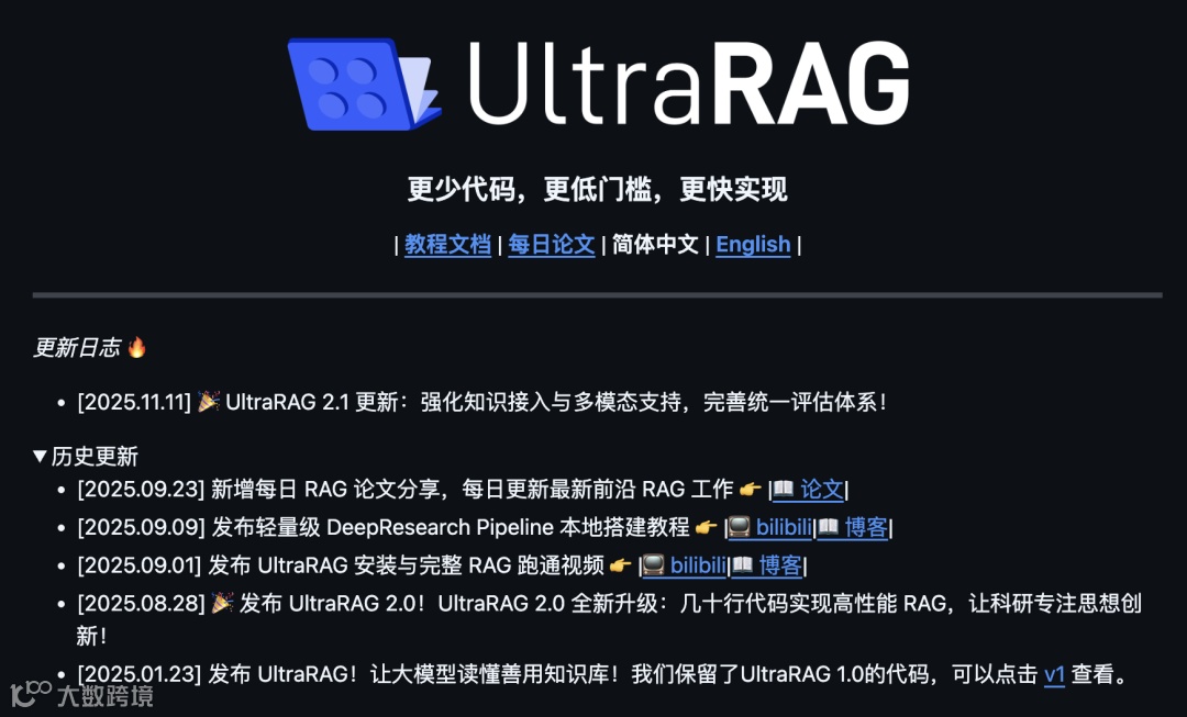UltraRAG 是由清华 THUNLP、东北大学 NEUIR、OpenBMB 等多方联合推出的开源项目。