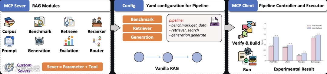通过 YAML 配置驱动检索、生成、评估全流程,支持多种引擎与可视化分析,提升实验复现效率。