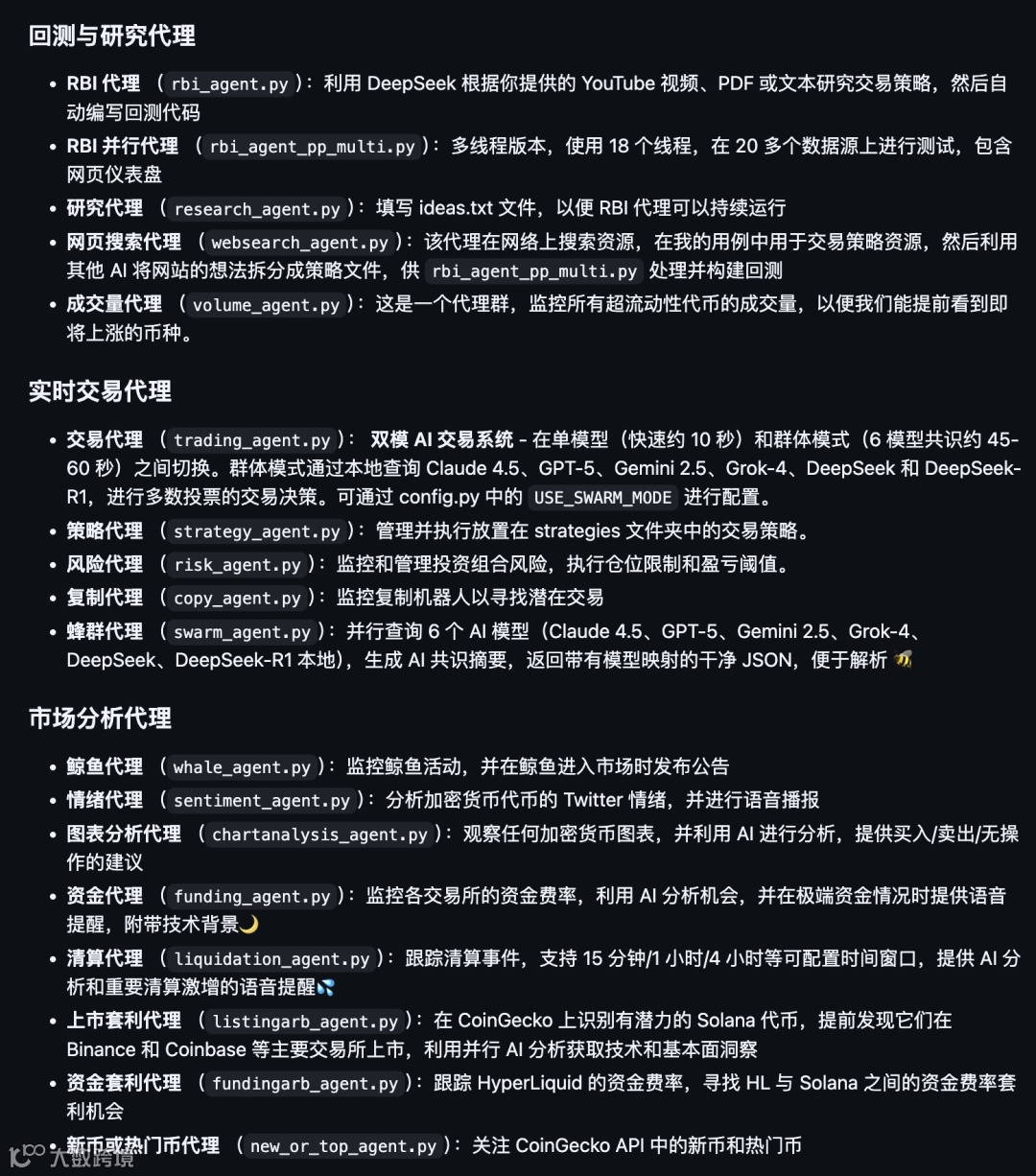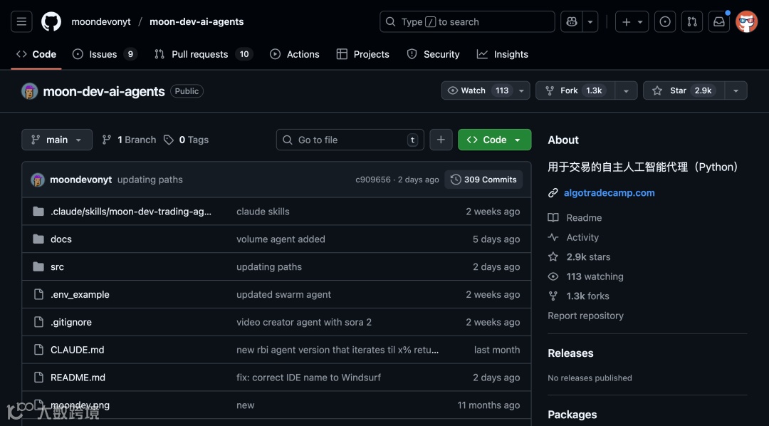 这个叫做 moon-dev-ai-agents 的开源项目,是一个油管大 V 开源的。