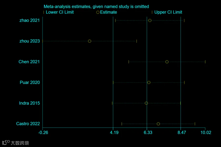说明删除任意研究后,整体效应几乎不变。