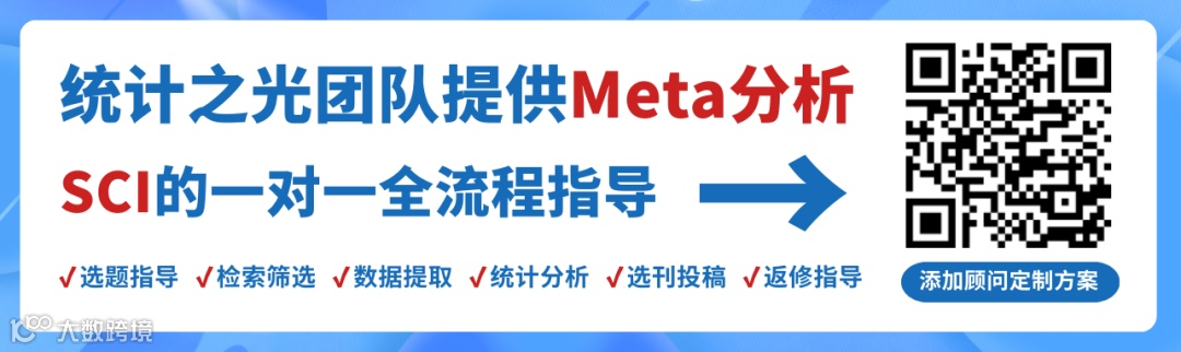 如果你想学习这种通过Meta分析发表SCI的方法,难于找不到一个合适的选题、苦于研究过程中遇到的问题太多无法持续推进,那么可以了解一下统计之光Meta分析一对一教学指导。