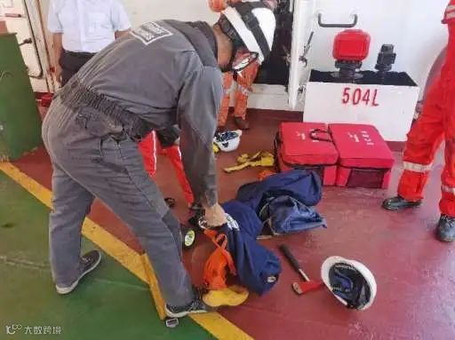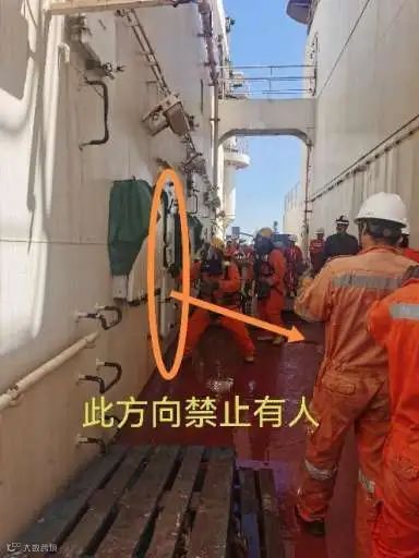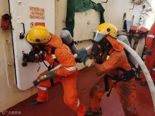 消防与弃船演习按标准程序进行,模拟火灾后火势失控转为弃船,完成全流程操作。演习结束后,检查官组织讲评,指出消防员面部防护不足,缺少防护面罩,开具缺陷要求14天内整改[k]。