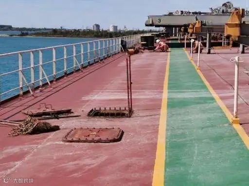 货舱区域未深入检查,整体甲板状况良好,保养到位。No.1、No.2舱甲板仍在有计划地进行维护。舱口围及流水孔状态正常[k]。