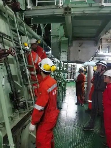 从集控室开始,PSCO依次检查舵机间水雾喷淋系统、应急逃生通道、分油机间,并核实主机、副机及锅炉燃油转换阀是否处于低硫油(LSMGO)状态,现场确认无误。随后巡视三台副机,检查接油盘是否存在漏油现象,并随机选取3号副机进行漏油报警测试[k]。