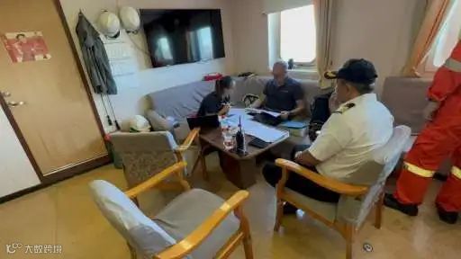 靠泊后,PSCO于0940当地时间登轮,在完成进港手续后召开首次会议。由于船舶已运营超过十二年,检查官明确将实施扩大范围检查,并安排船长协调船上供餐。参与人员包括船长、轮机长和大副,会议中确定了检查项目、顺序及相关准备工作[k]。