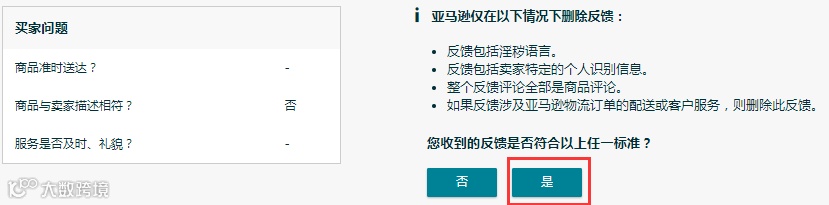 4. 如果反馈涉及亚马逊物流订单的配送或客户服务,则删除此反馈。