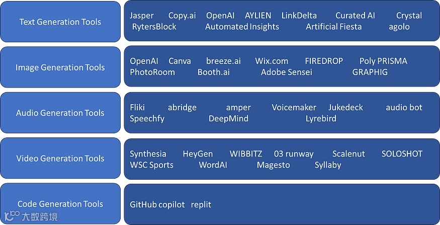 生成式人工智能的各个模块分为: