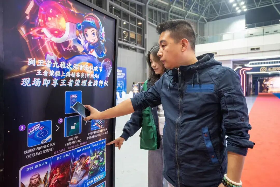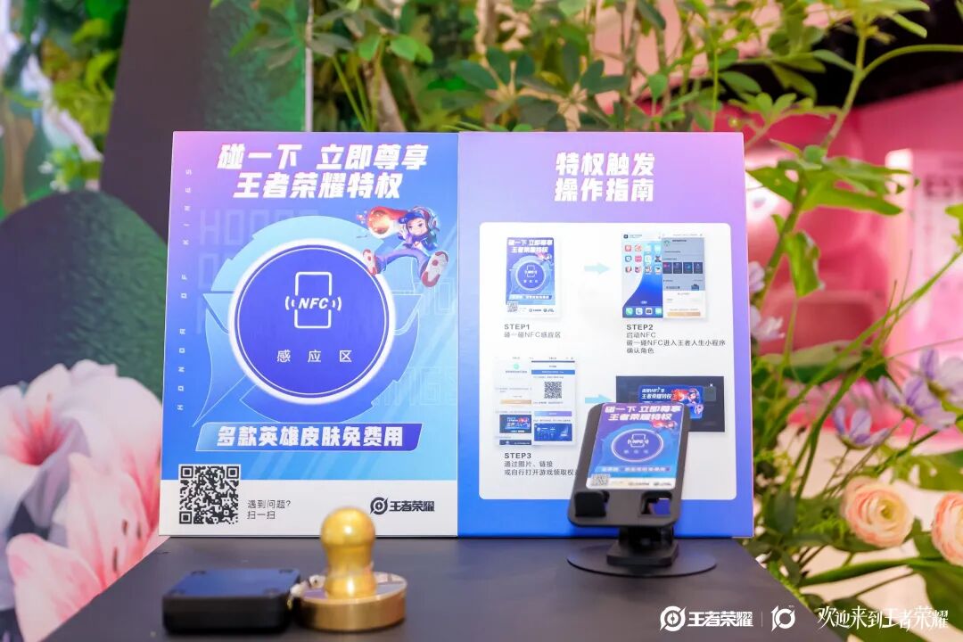 玩家只需用手机触碰NFC设备,即可免费解锁115个英雄、159款热门皮肤及16套满级铭文等多重福利。王者荣耀金牌特权以活动现场可得、专属线下体验的游戏福利为亮点,这种“特权快闪+线下专享”的模式直接戳中玩家的核心诉求,成为活动现场的亮点。