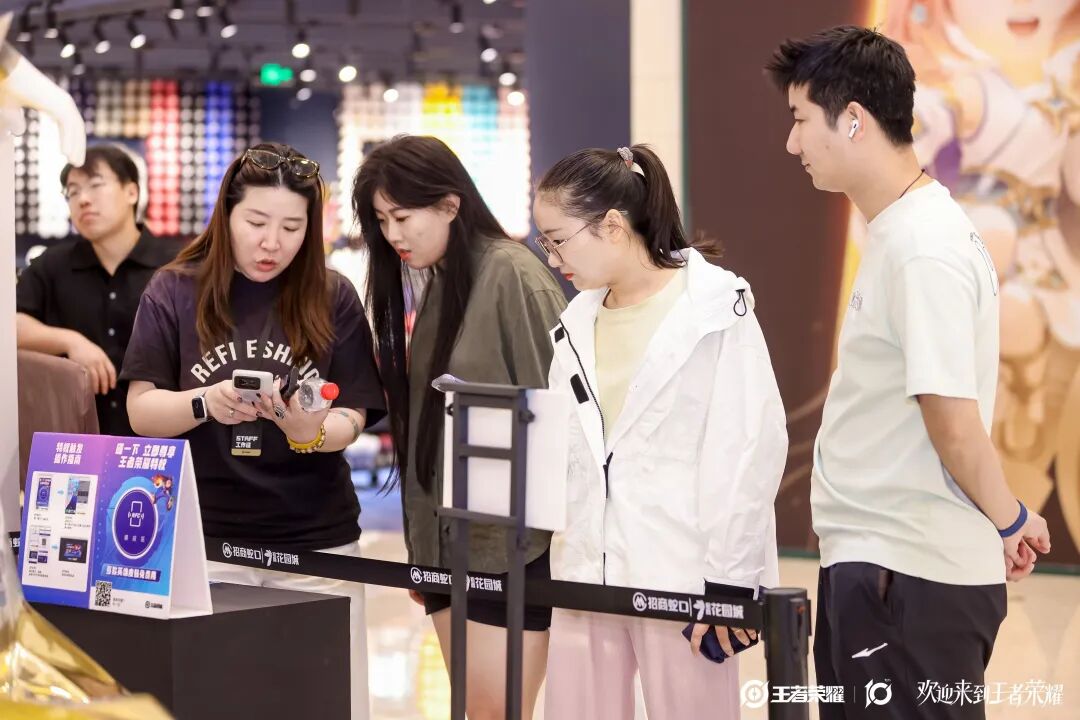 活动期间,吸引全国多地玩家到场参与。为提升现场体验、有效活跃客流,王者荣耀金牌特权以“快闪”形式落地,通过“一碰即享”的NFC技术,为商业空间注入全新互动体验,构建了从引流到留客的完整体验闭环。