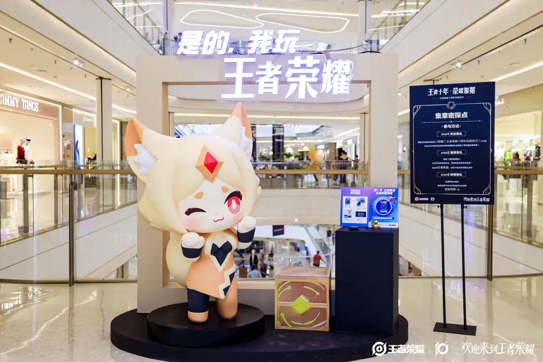 王者荣耀十周年庆典之际,南京玄武花园城作为本次庆典的核心阵地,结合王者荣耀特权快闪店,打造了一场覆盖商业、文旅多领域的沉浸式嘉年华。腾讯游戏人生策划运营组织,让王者荣耀英雄主题打卡点位遍布各楼层,从峡谷地貌复刻到角色技能可视化装置,让玩家仿佛置身游戏世界,吸引大量年轻玩家到场体验。