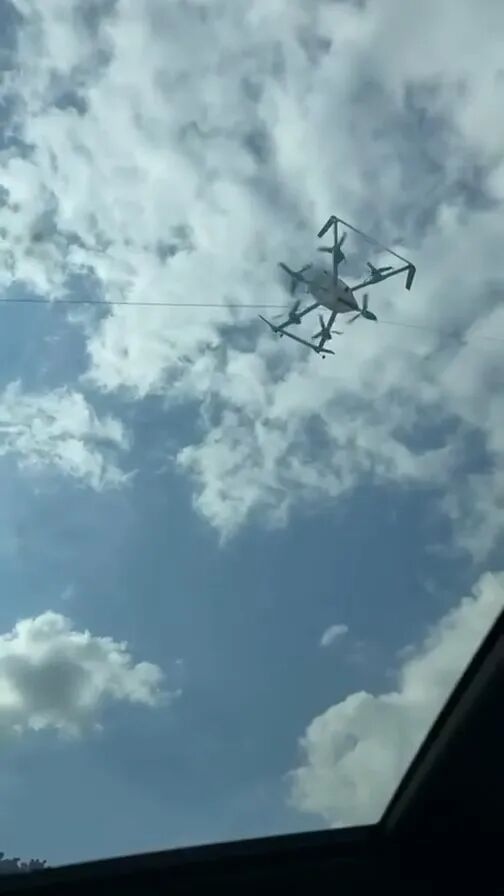 视频显示,这架亚马逊无人机剪断了电线。视频还显示,随后无人机的马达似乎关闭了,飞机自行降落,在下降过程中螺旋桨轻微地随风转动。除了其中一个螺旋桨受损外,无人机本体似乎保持完好。
