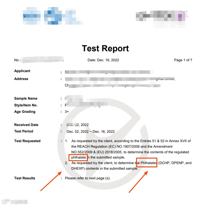 2、应该包含邻苯二甲酸盐(phthalates)测试