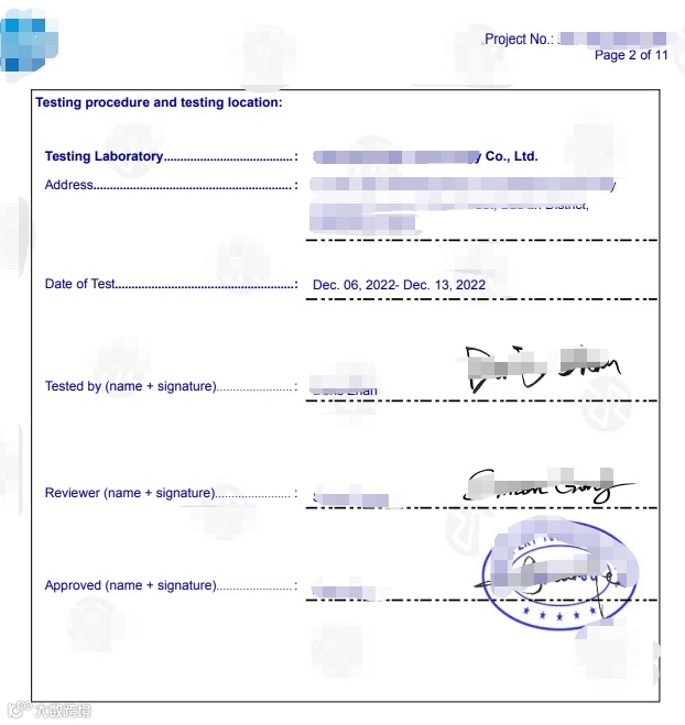 1. 实验室出具的官方证书/检测报告,含检测实验室名称、签字或盖章
