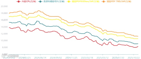 表1 2025年以来化纤主要产品及原料价格变化